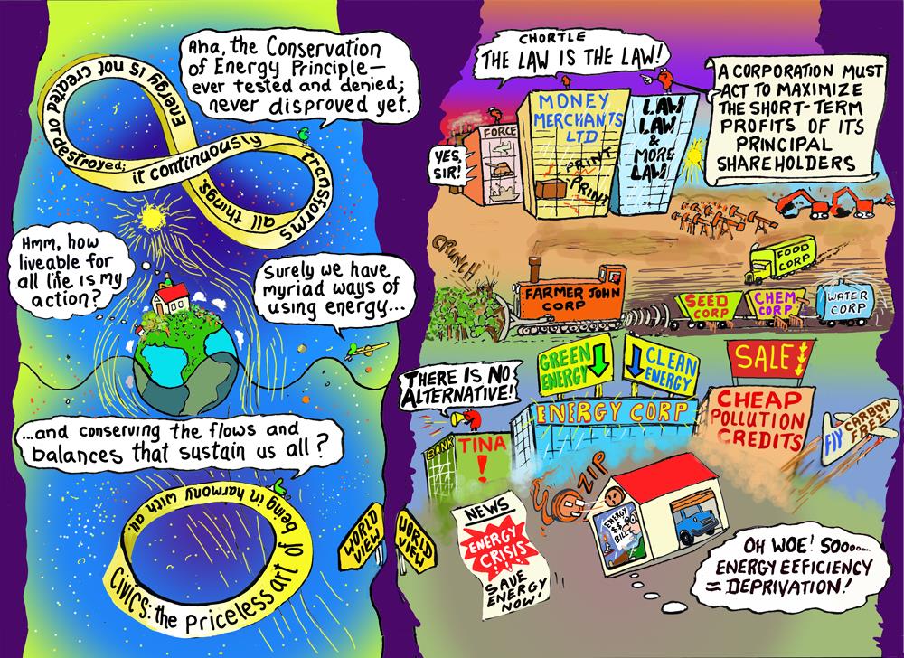 Hmmm, “energy” or “god”? Which of these is the most potent word in the English language nowadays? Everyone is vitally intimate with energy, no one knows what it is and our flawed notion of energy can destroy us. This is our great human conundrum.