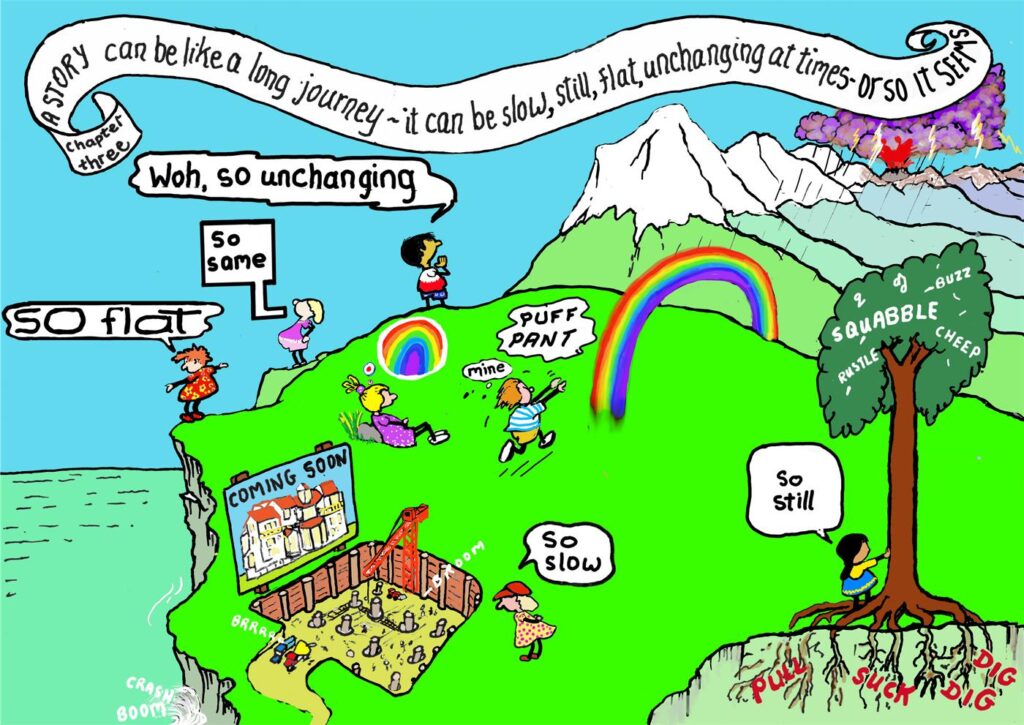 A story can be like chasing a rainbow. The faster you run to catch it, the quicker it skips and flits through trees, fences, rivers and hills away from you. However the rainbow will bedazzle and dance with you if you simply stand still and give it all your attention. Or so it seems.