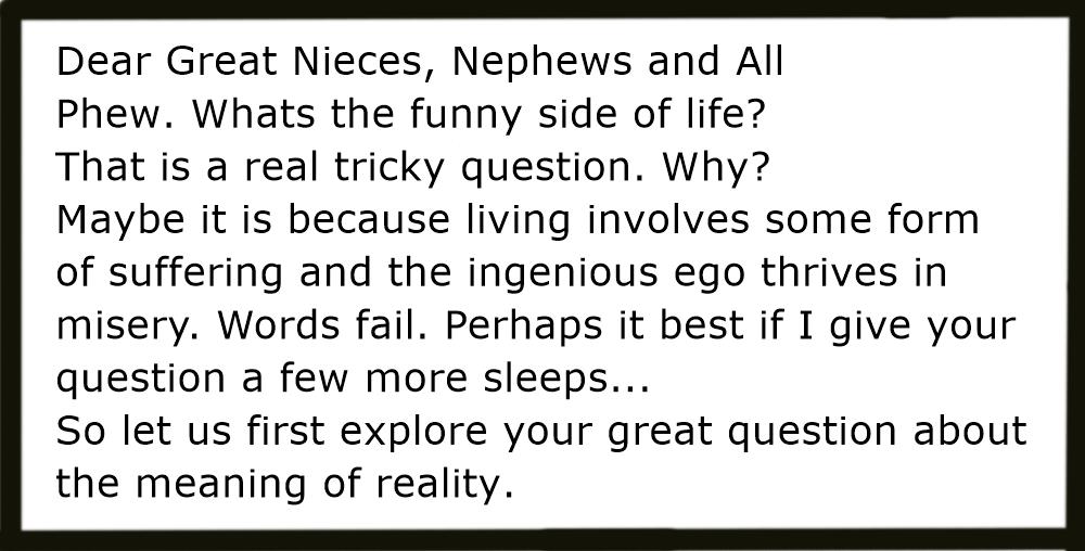 Actually, what is “reality”? It seems to mean something different to each of us and this is reflected in our lifestyle. Perhaps we can learn from observing what reality means in our modern culture and comparing it with the reality of our ancestors 2-3000 years ago.