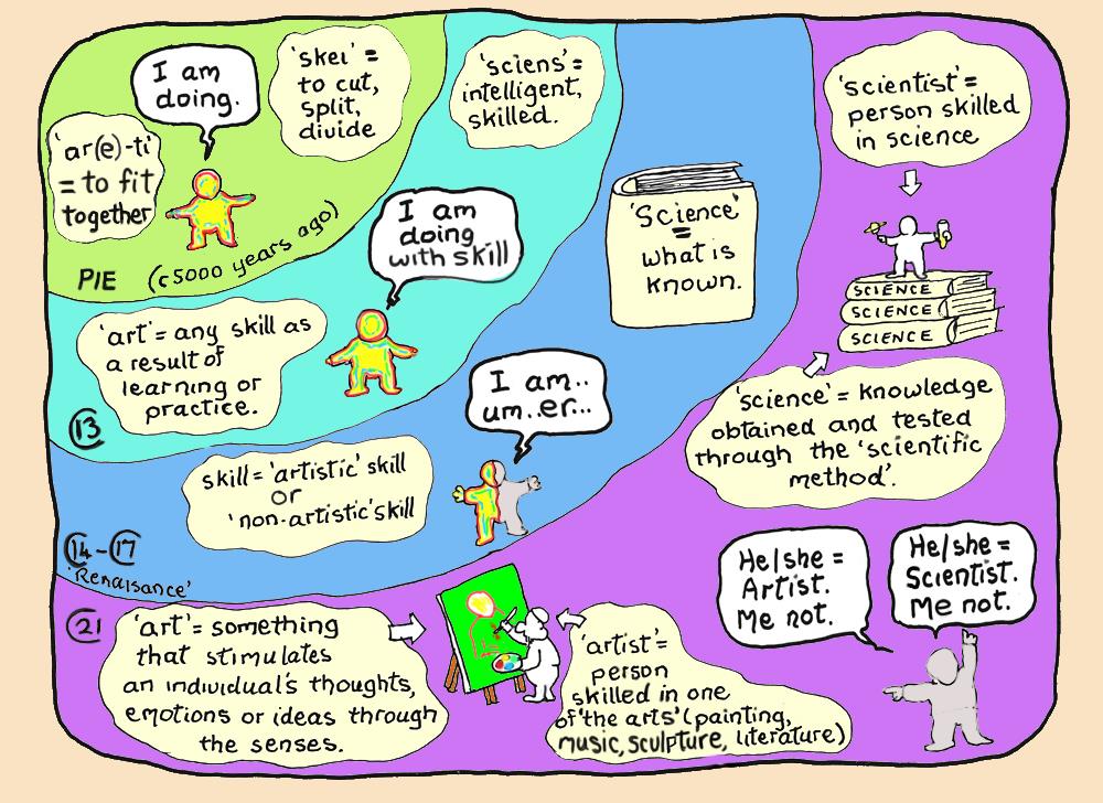 We also learned that “science” is kind of the opposite of the “the arts” and even fewer of us could or would become “artists”. What if this is untrue too? After all, the meaning of these words has changed hugely over recent centuries…