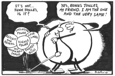 *Note Two. My employment in 2000 for an “energy efficiency” company caused me to ask, “What is energy efficiency?” The conventional definitions that our experts provided were all clearly flawed. The answer came in the form of the creation of a cartoon strip “Bonus Joules and The Knowledge Economy”, in which Bonus Joules, symbolizing our inclusive qualities, searches for meaning and eventually joins with our complementary exclusive qualities, thus forming the profound Yin~~Yang symbol.