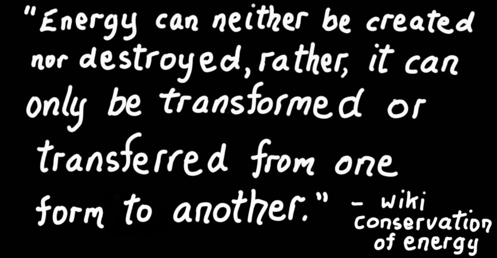 With compassion, the Conservation of Energy Principle reminds us in a spirit of honesty, inquiry and wonder that energy is information continuously informing, transforming the countless, myriad possible forms of energy.