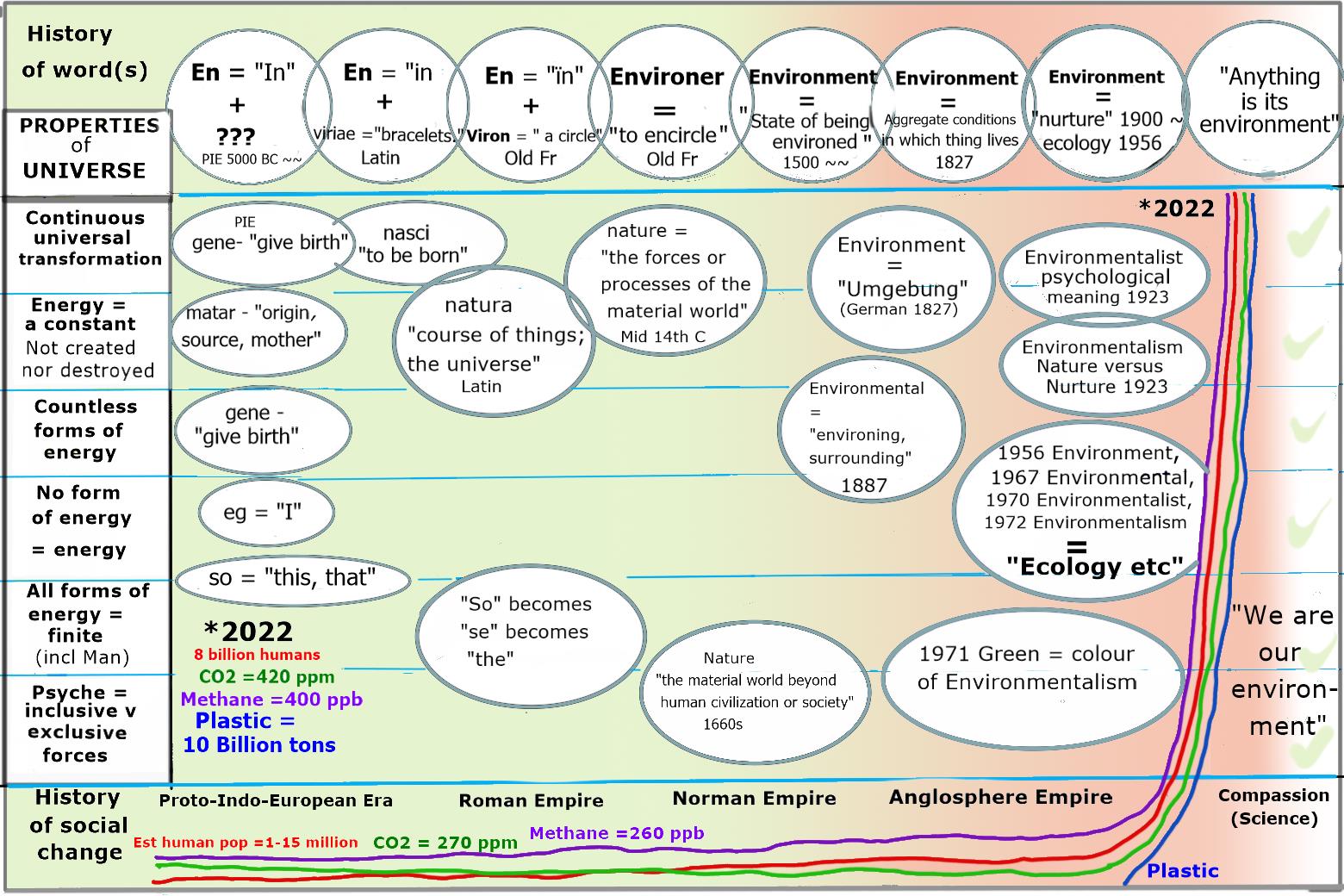 Perhaps it is helpful to start by first exploring the big picture of our use of the English language. After all, pictures can communicate truths of the human condition in ways that words never can. We will travel back a few millennia to the known genesis of the above English words with a particular focus on the evolution of the word “environment”.