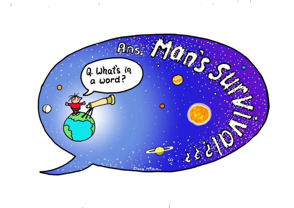 And maybe a more compassionate voice in you is inquiring, ”Wait, how is it possible that the survival of Mankind could rest in a word? And which word might that be?”
